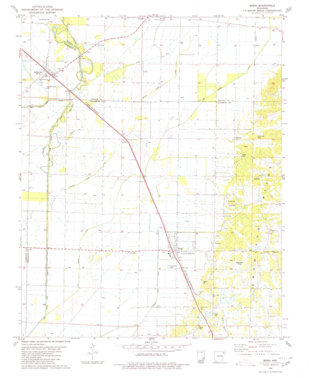 Classic USGS Bono Arkansas 7.5’x7.5′ Topo Map โ MyTopo Map Store