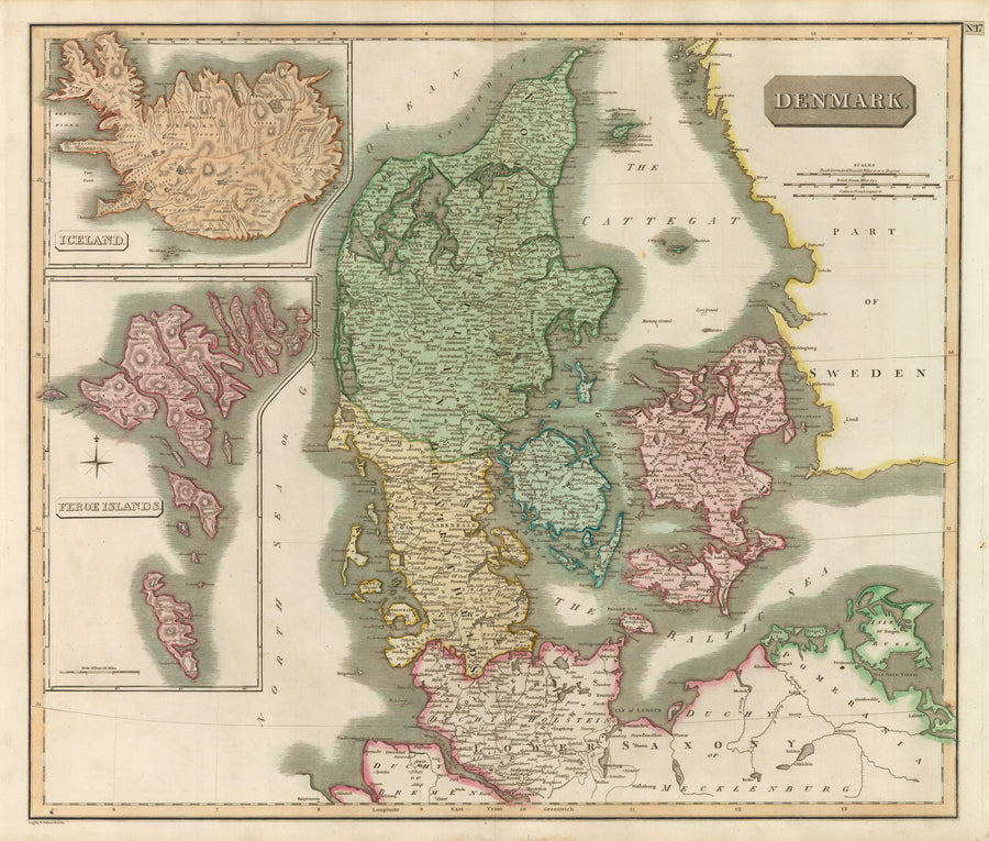 Old map of Denmark, Iceland and the Faroe Islands – New World