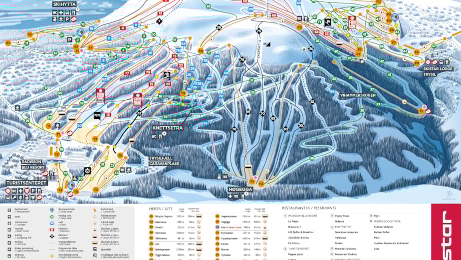 Trysil Ski Map – Naast de sneeuwhoogte van Trysil vind je hier ook informatie over de kwaliteit van de sneeuw en hoeveel liften en pistes er geopend zijn in het skigebied Trysil. Actuele sneeuwhoogte in Trysil Iedere . Het dorp Trysil ligt onderaan de berg, om de rivier de Klarälven. Het centrum van Trysil dorp ligt aan de andere kant van de rivier (ten opzichte van het skigebied). Je vindt hier een aantal winkels, .